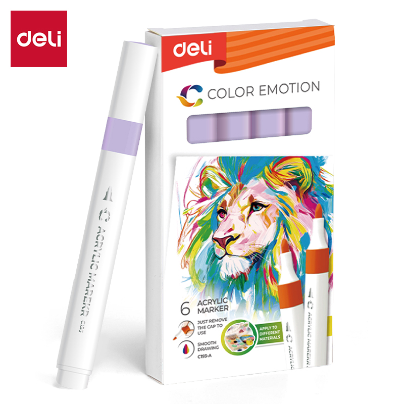 DELI Akrilni marker Color Emotion – namenjen je za precizno i kreativno izražavanje na različitim površinama, uključujući papir, karton, platno, drvo, metal, staklo i plastiku. Marker koristi akrilnu boju na bazi vode koja se brzo suši, ne razliva se i ne sadrži neprijatan miris, što ga čini pogodnim za svakodnevnu upotrebu kod dece, učenika, umetnika i hobista. Zahvaljujući visokoj pigmentaciji i kvalitetnom pisnom vrhu, omogućava ravnomerno nanošenje boje uz jasne, postojane linije. Donosi dozu svežine i jasnoće u svaku ilustraciju ili projekat, dok boja ostaje trajna i otporna na bledenje.